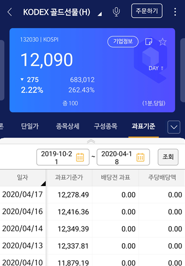 코덱스 골드선물 과표기준가격은 아래와 같이 증권사 조회화면을 통해 쉽게 확인할 수 있습니다.