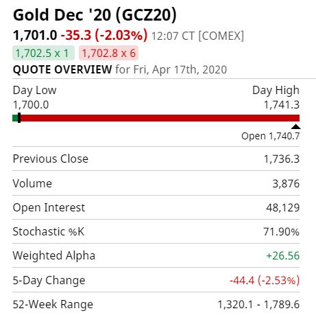 골드선물 2020년 12월물 가격은 온스당 1,701$ 로 6월물, 8월물 대비 약간 더 높습니다.